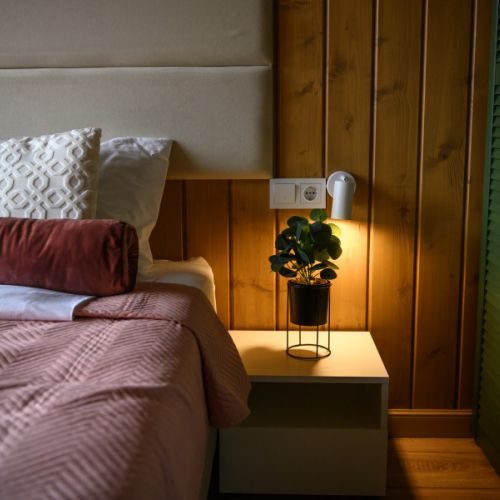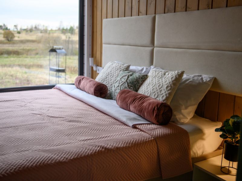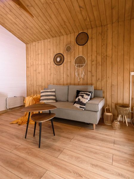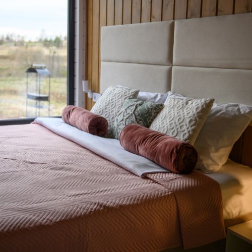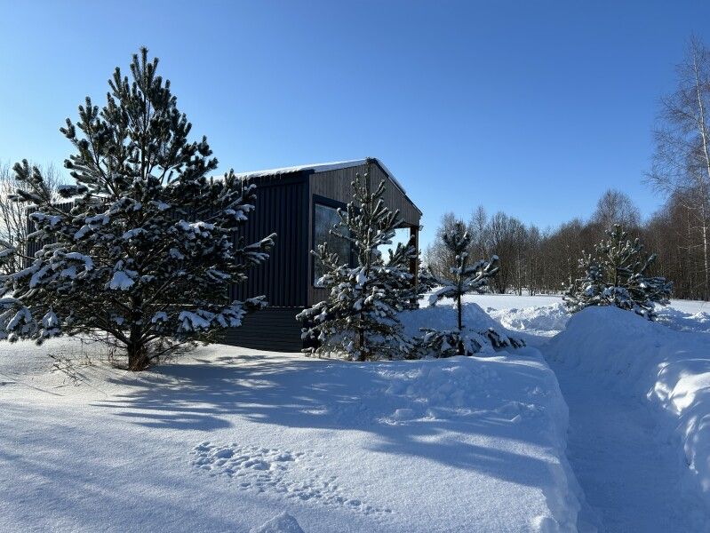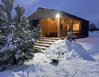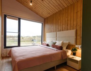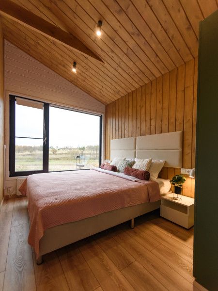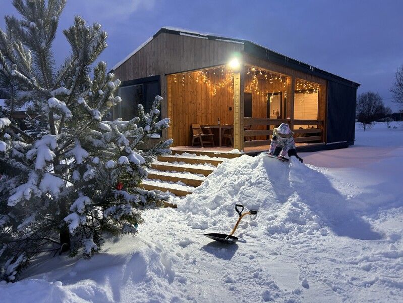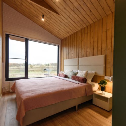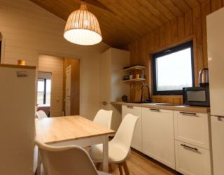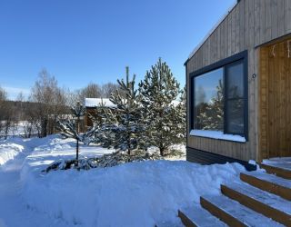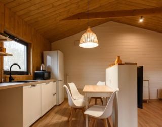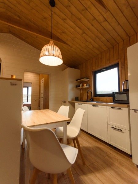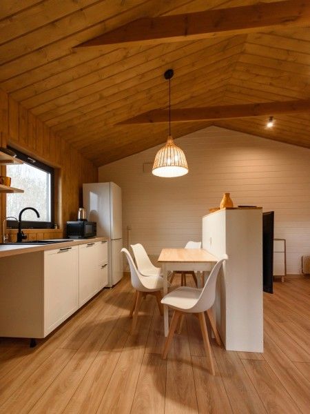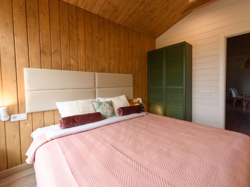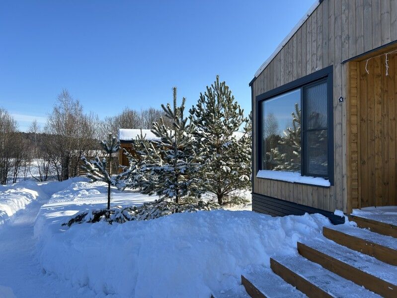 Глэмпинг включает 5 уютных барнхаусов из дерева с панорамными окнами и открытой террасой. Все коттеджи современно и со вкусом оформлены и имеют схожую планировку и комплектацию. В каждом доме подготовлены 4 спальных места: большая кровать в спальне и раскладной диван в гостиной. Кухни полностью укомплектованы техникой и утварью для самостоятельного приготовления блюд. В санузлах предусмотрена душевая. Все барнхаусы оборудованы теплыми полами и кварцевыми обогревателями. Снаружи у каждого установлен мангал. Можно приехать с питомцем средней породы.